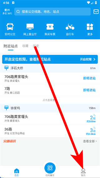1、打開衢州行,點擊底部我的。