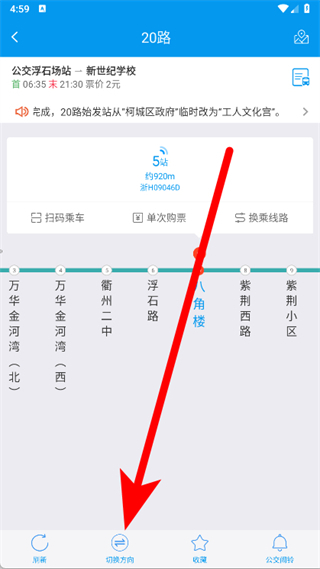3、進(jìn)入線路詳情頁后,點(diǎn)擊底部切換方向。
