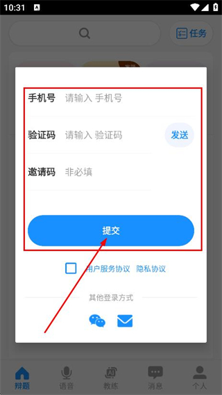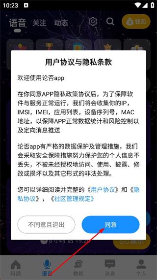 1、在用戶協(xié)議與隱私條款彈窗中,點(diǎn)擊同意,進(jìn)入論否app。