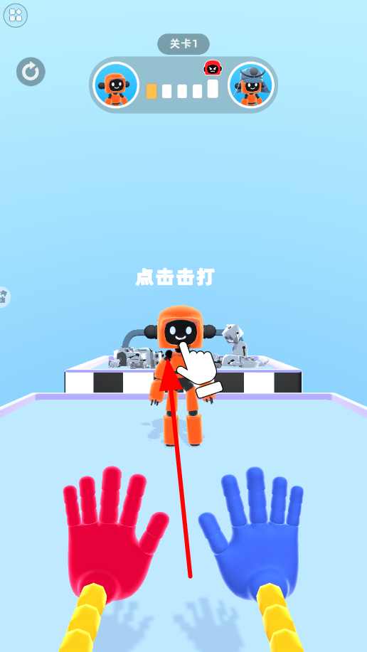 1、按照提示點(diǎn)擊屏幕擊打機(jī)器人,這是基礎(chǔ)的互動(dòng)操作,通過(guò)點(diǎn)擊能開(kāi)啟后續(xù)的游戲進(jìn)程,讓游戲逐步推進(jìn)。