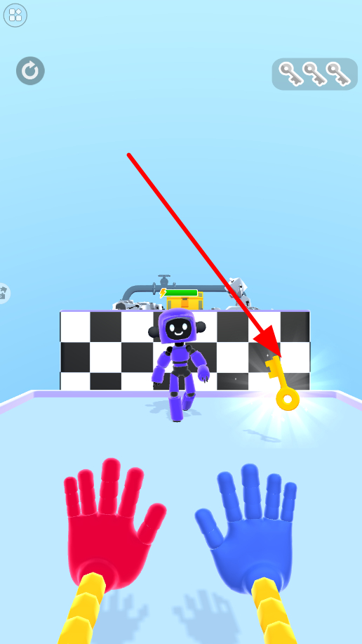 3、移動(dòng)到鑰匙所在位置,進(jìn)行拾取操作,鑰匙是通關(guān)的關(guān)鍵道具,收集到鑰匙后能為解鎖關(guān)卡等目標(biāo)提供重要助力。