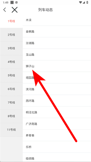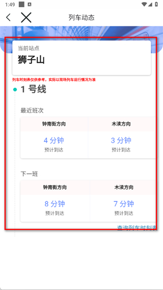 4、查看該站點(diǎn)對(duì)應(yīng)線路的列車實(shí)時(shí)動(dòng)態(tài)。