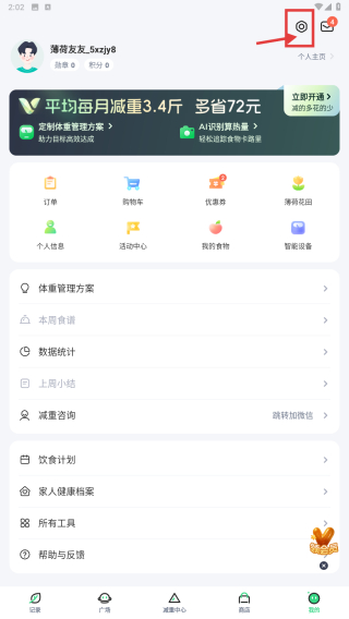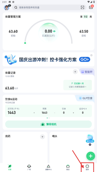 1、打開體重管理類應(yīng)用,點(diǎn)擊底部我的選項(xiàng),進(jìn)入個人中心頁面。