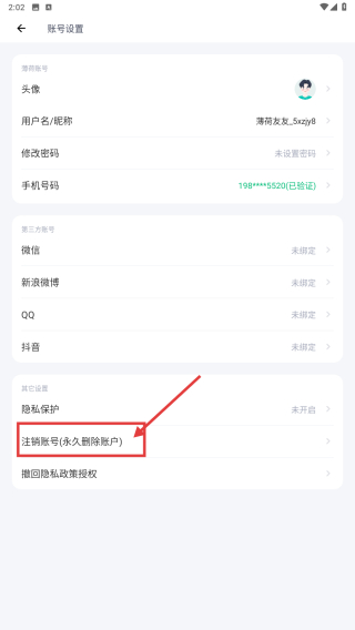 4、在賬號設(shè)置界面,點(diǎn)擊注銷賬號永久刪除賬戶選項(xiàng),進(jìn)行賬號注銷操作。
