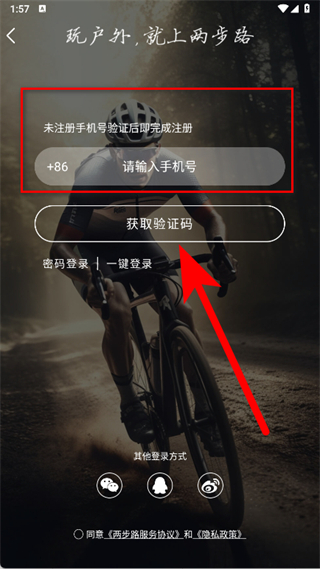 3、在注冊登錄頁面,輸入手機(jī)號(hào)后點(diǎn)擊獲取驗(yàn)證碼。