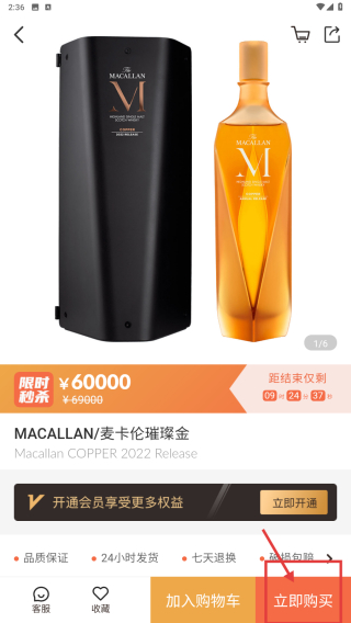 3、選擇麥卡倫璀璨金商品條目,進入商品詳情頁面。
