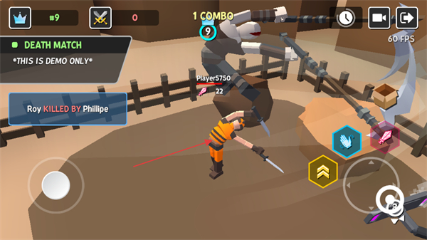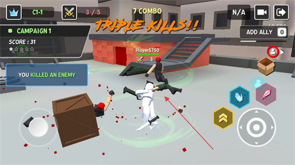 3、留意屏幕上方連擊數(shù)顯示,連續(xù)擊中敵人獲取連擊效果,達成如TRIPLEKILLS!!等多殺成就。