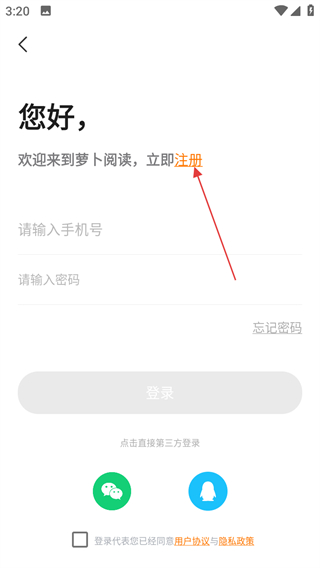 3、在登錄注冊頁面,點(diǎn)擊注冊,進(jìn)入注冊賬號頁面。