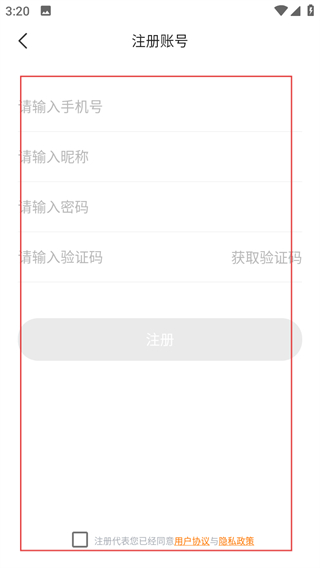 4、在注冊賬號頁面,依次填寫信息,勾選協(xié)議后點(diǎn)擊注冊,完成賬號注冊。