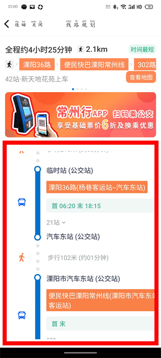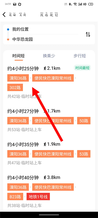 4、點擊方案查看詳細的公交換乘站點、首末班車時間及步行指引等信息。