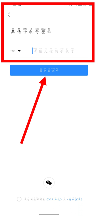 3、進(jìn)入其他手機(jī)號(hào)登錄頁(yè)面,輸入手機(jī)號(hào)后,點(diǎn)擊獲取驗(yàn)證碼。