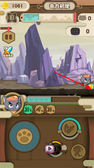 2、點擊攻擊按鈕發(fā)起攻擊,這是基礎(chǔ)戰(zhàn)斗操作,通過攻擊消滅敵人,積累金幣和經(jīng)驗。