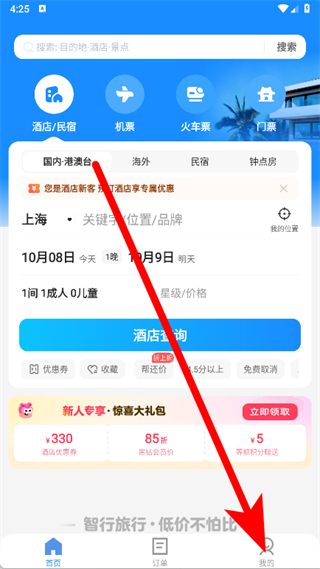 1、打開智行旅行APP,點(diǎn)擊底部我的。