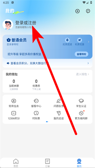 2、在我的頁面,點(diǎn)擊登錄或注冊。