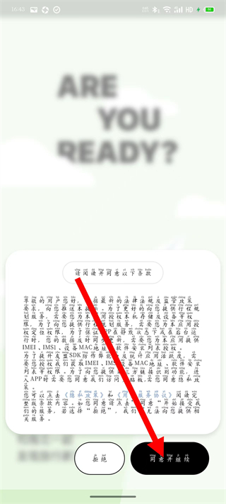 1、打開指北旅行APP,在彈窗中點(diǎn)擊同意并繼續(xù)。