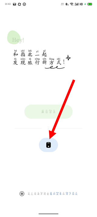 2、在引導(dǎo)頁,點(diǎn)擊下方圖標(biāo)進(jìn)入登錄環(huán)節(jié)。