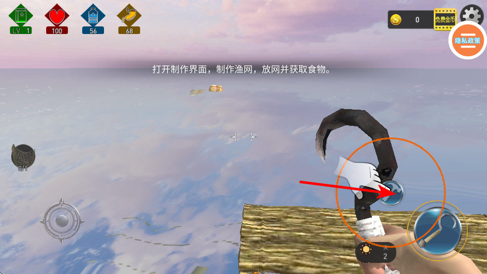 4、打開(kāi)制作界面,制作漁網(wǎng)等生存工具,漁網(wǎng)可用于捕魚(yú)獲取食物,保障饑餓值,海上長(zhǎng)期生存。