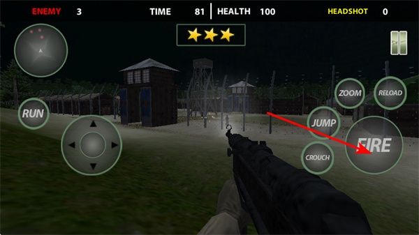 2、把握射擊時(shí)機(jī),點(diǎn)擊FIRE按鍵發(fā)起攻擊,有效消滅敵人,提升了戰(zhàn)斗效率。