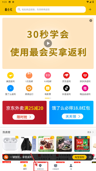 1、打開(kāi)最會(huì)買應(yīng)用,點(diǎn)擊底部本地生活選項(xiàng),進(jìn)入本地生活頁(yè)面。