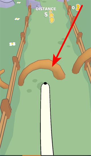 1、開(kāi)始后,長(zhǎng)鼻狗會(huì)自動(dòng)向前奔跑,玩家需通過(guò)滑動(dòng)等操作,控制它左右移動(dòng),避開(kāi)如彎曲木欄這類障礙。