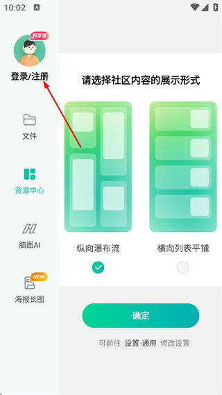 2、在社區(qū)內(nèi)容展示形式選擇頁面,點(diǎn)擊登錄注冊,進(jìn)入登錄賬號(hào)頁面。