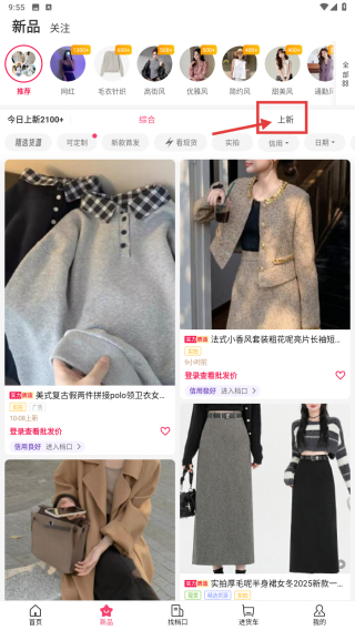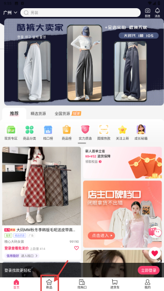 1、打開服裝電商應(yīng)用,點(diǎn)擊底部新品選項(xiàng),進(jìn)入新品頁面。