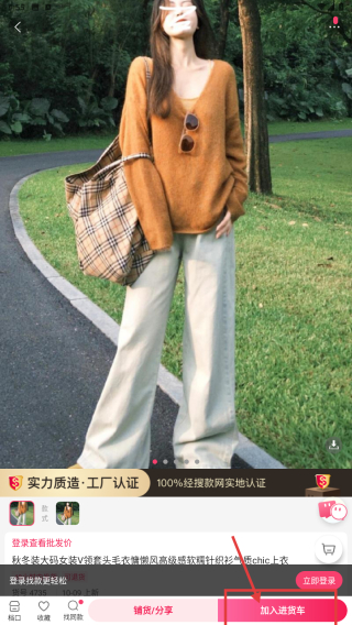 4、在詳情頁面,點(diǎn)擊加入進(jìn)貨車按鈕,將商品加入進(jìn)貨車。