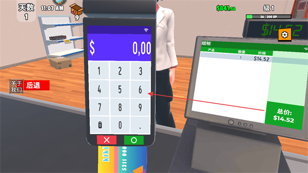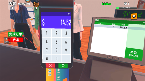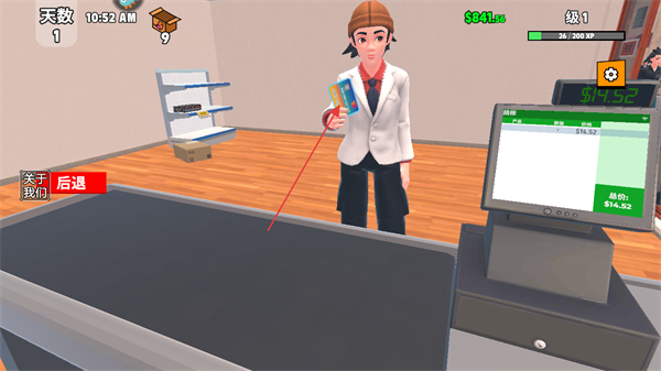 1、進入游戲留意屏幕上方天數(shù),時間,金錢數(shù)量及等級信息點擊商品開始收銀。