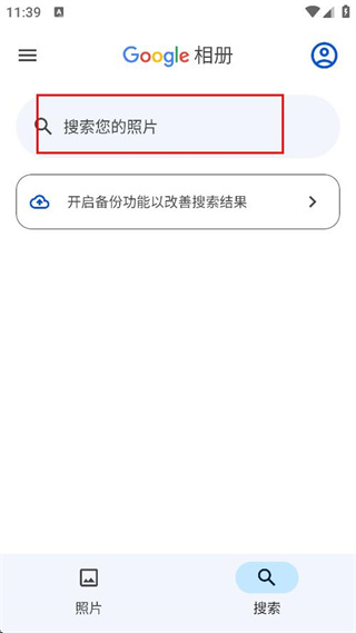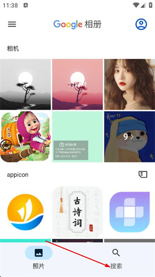 1、在Google相冊頁面,點擊底部搜索,進入搜索頁面。