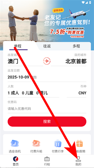 1、打開澳門航空APP,點(diǎn)擊底部我的。