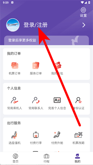 2、在我的頁面,點(diǎn)擊登錄注冊。
