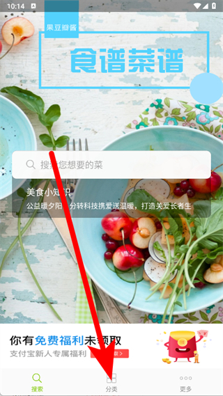 1、打開菜譜食譜應(yīng)用,點擊底部分類。