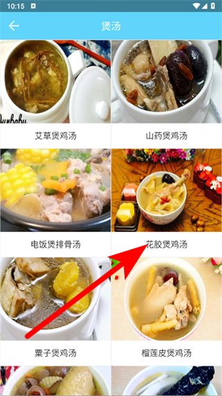 3、在煲湯分類的食譜列表中,點擊想要查看的食譜。