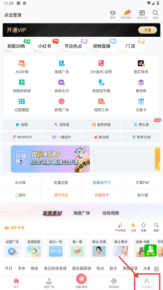 1、打開圖片編輯類應用,點擊底部個人中心選項,進入個人中心頁面。