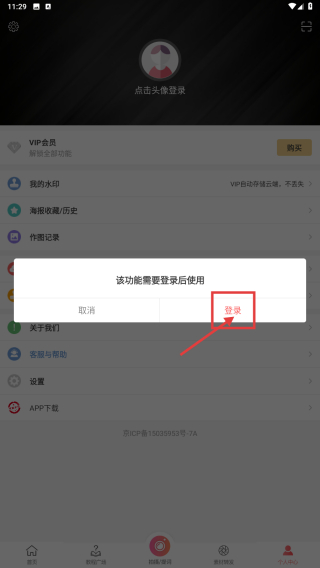 2、在個人中心,點擊點擊頭像登錄選項,彈出登錄提示框。