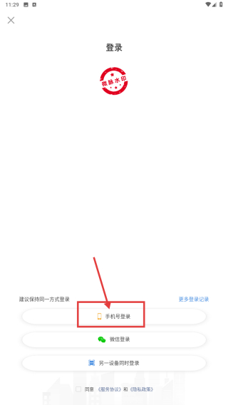 4、在登錄頁面,點擊手機號碼登錄選項,進行手機號碼登錄操作。