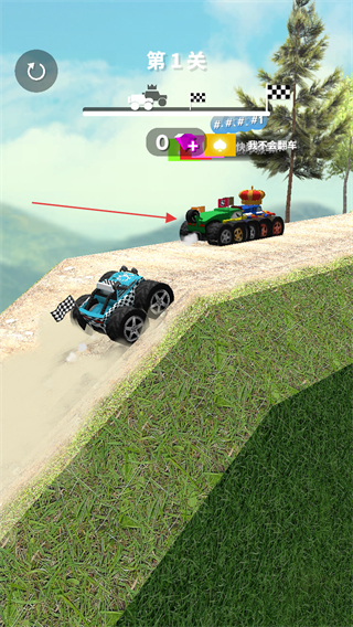 1、進(jìn)入第1關(guān),點(diǎn)擊屏幕操控按鈕,駕駛賽車在越野賽道上前進(jìn)。