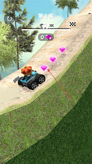 3、留意賽道上的紫色鉆石,操控賽車收集它們來(lái)獲取分?jǐn)?shù)。