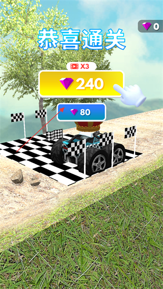 4、率先沖過(guò)終點(diǎn)線,看到恭喜通關(guān)提示后,領(lǐng)取鉆石獎(jiǎng)勵(lì)進(jìn)入下一關(guān)。