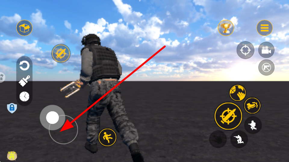 3、移動(dòng)控制依靠左側(cè)的虛擬搖桿,手指滑動(dòng)搖桿,能控制角色向不同方向移動(dòng),方便在場景中穿梭,探索環(huán)境或接近目標(biāo)。