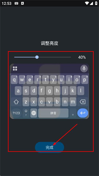 4、在調(diào)整亮度頁面,調(diào)整亮度后,點擊完成,完成主題設(shè)置。