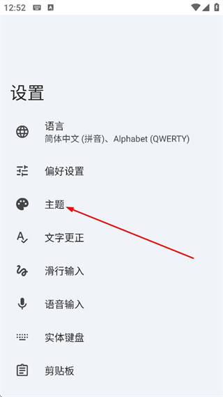 1、在設(shè)置頁面中,點擊主題,進入主題設(shè)置頁面。