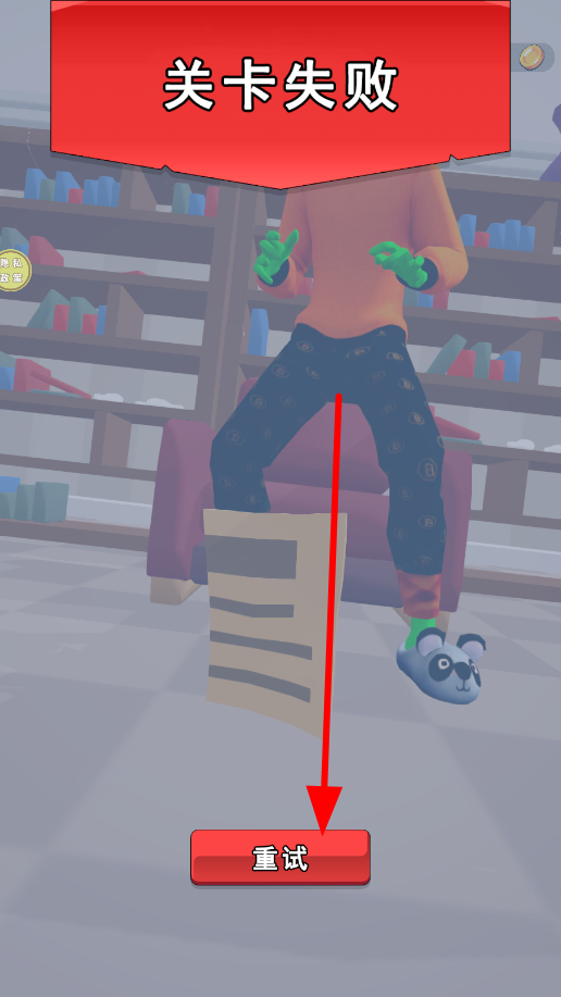 4、失敗重試時(shí),當(dāng)出現(xiàn)關(guān)卡失敗提示,點(diǎn)擊重試按鈕,就能重新開(kāi)始當(dāng)前關(guān)卡,再次嘗試通關(guān),積累經(jīng)驗(yàn)操作水平。