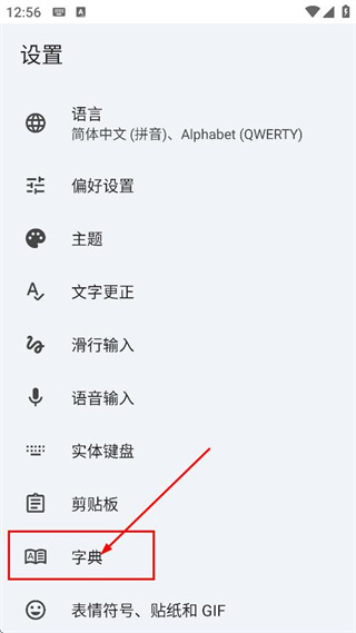2、在字典設(shè)置頁面,點擊個人字典,進入個人字典語言選擇頁面。