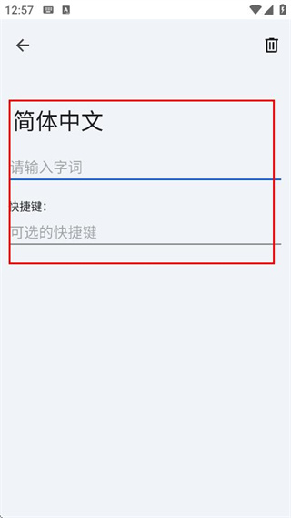 4、在簡體中文字典編輯頁面,可輸入字詞和設(shè)置快捷鍵,進行字典內(nèi)容編輯。