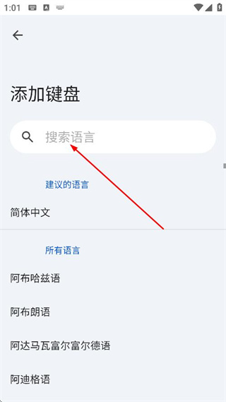 3、在添加鍵盤頁面,點擊搜索語言的搜索框,可搜索要添加的語言。