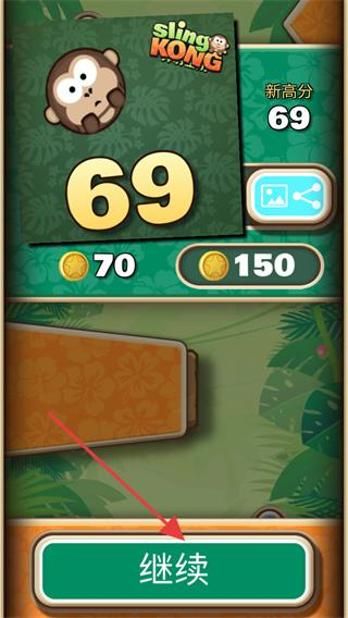 4、結(jié)束游戲后,查看得分,如獲得69分,點(diǎn)擊繼續(xù)可重新開始挑戰(zhàn)。