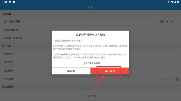 4、勾選已閱讀并理解后,點(diǎn)擊狠心注銷按鈕,完成賬號(hào)注銷操作。