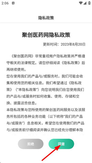 1、在隱私政策的頁(yè)面,點(diǎn)擊同意,進(jìn)入APP首頁(yè)。