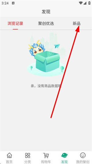 3、在發(fā)現(xiàn)頁(yè)面,點(diǎn)擊新品,進(jìn)入新品列表頁(yè)面。